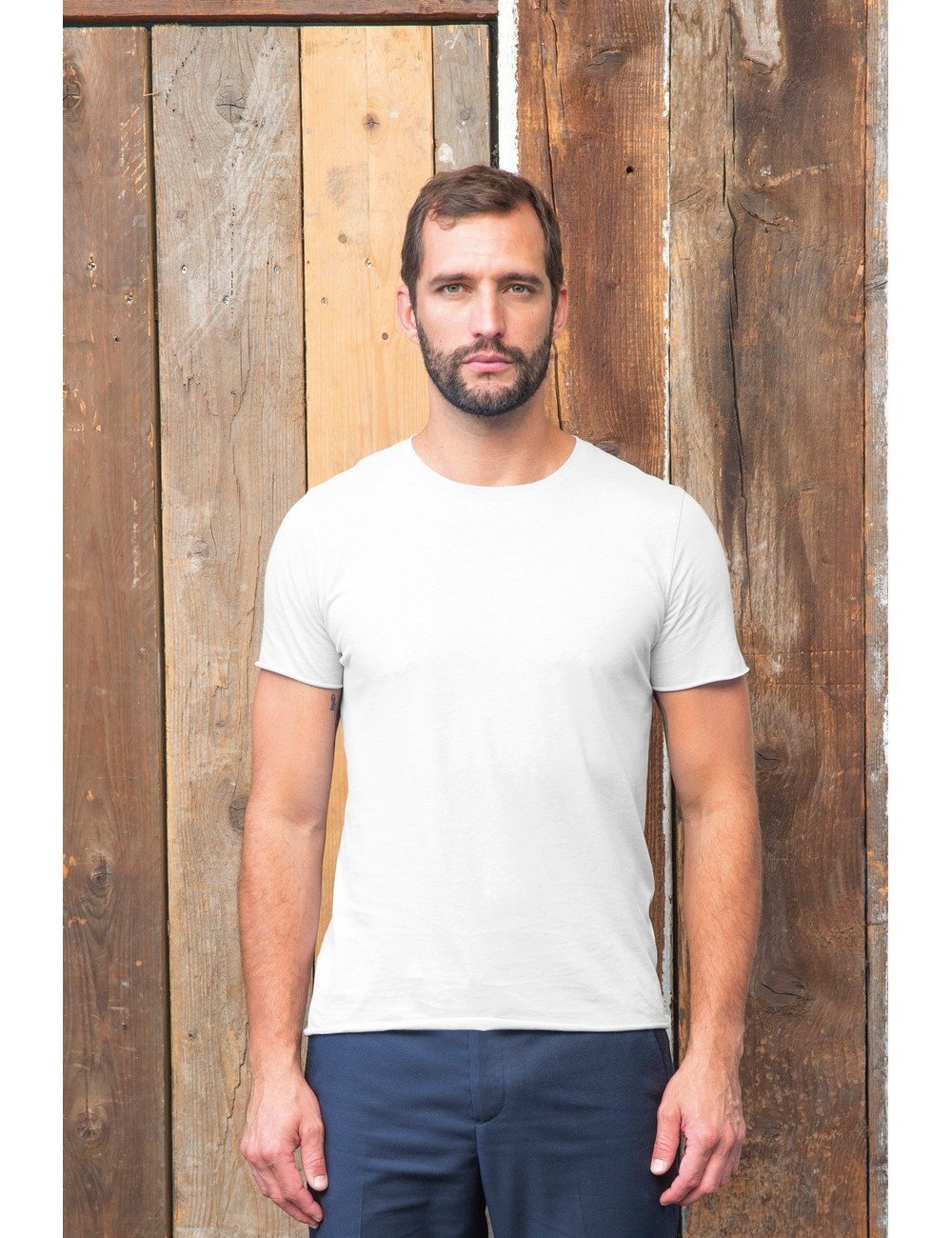 Κοντά μανίκια – Στρογγυλή λαιμόκοψη με ριπ από μερσεριζέ βαμβάκι – Τελείωμα με θερμοκόλληση στο κάτω μέρος του μανικιού και