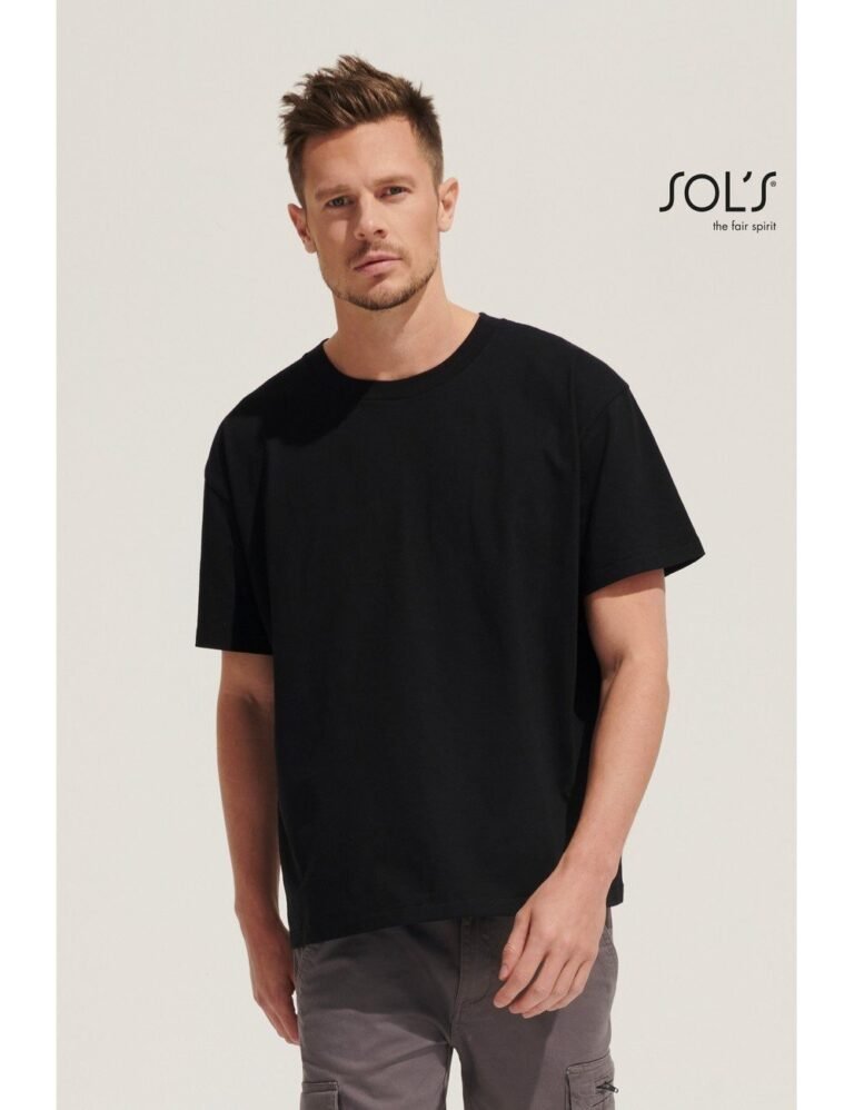 Κοντά μανίκια – Χωρίς πλαϊνές ραφές – Φαρδύ – Ριχτοί ώμοι – Στρογγυλή λαιμόκοψη από ελαστικό ριπ – Φακαρόλα στο