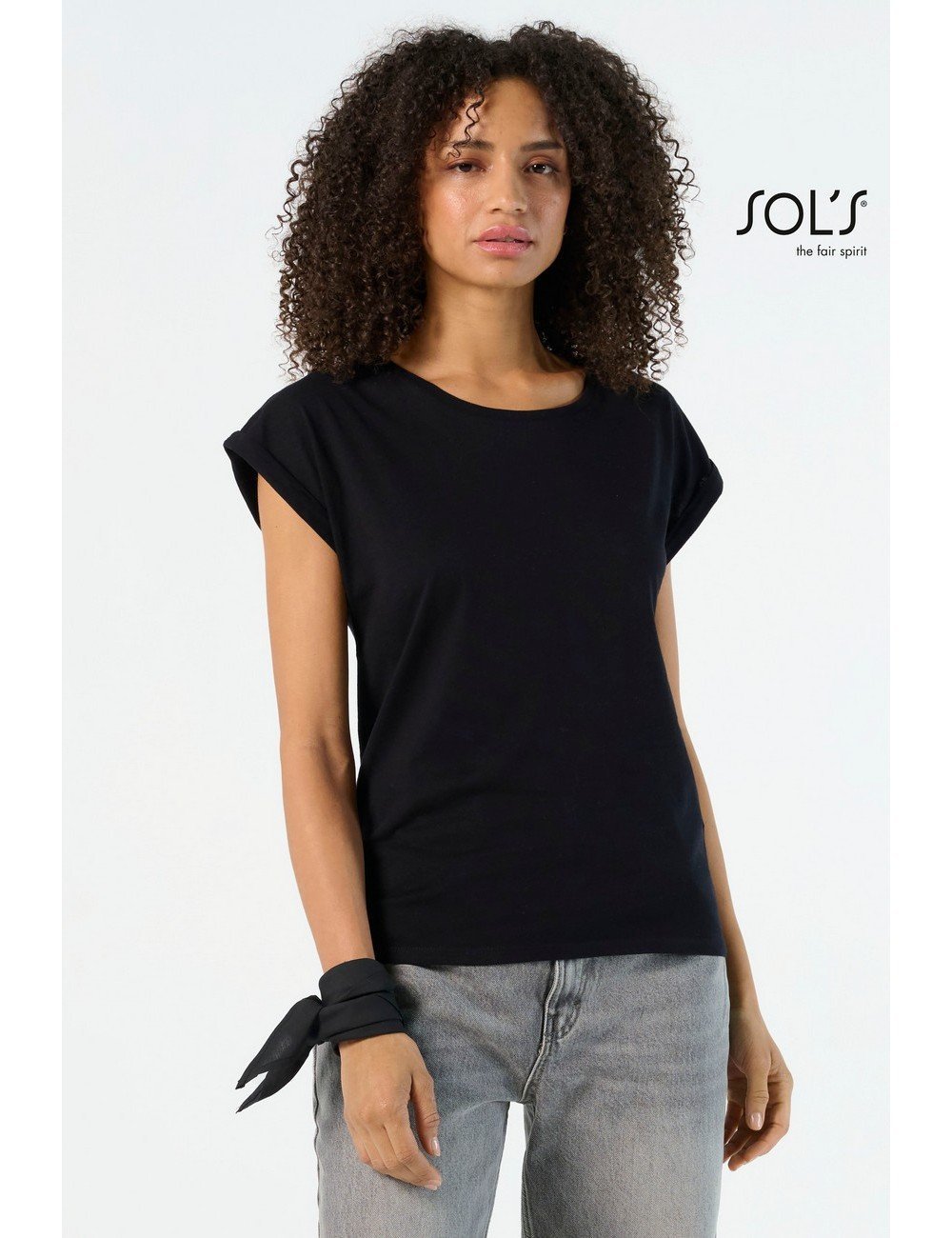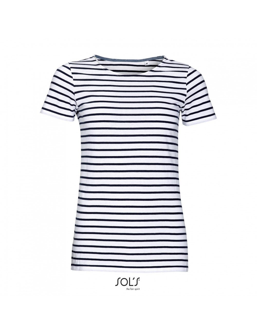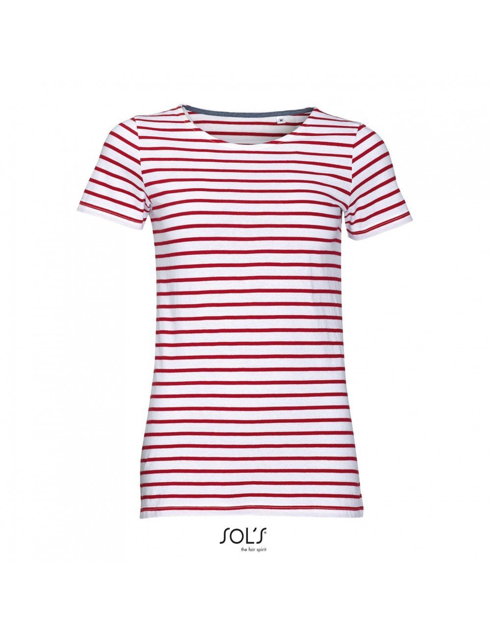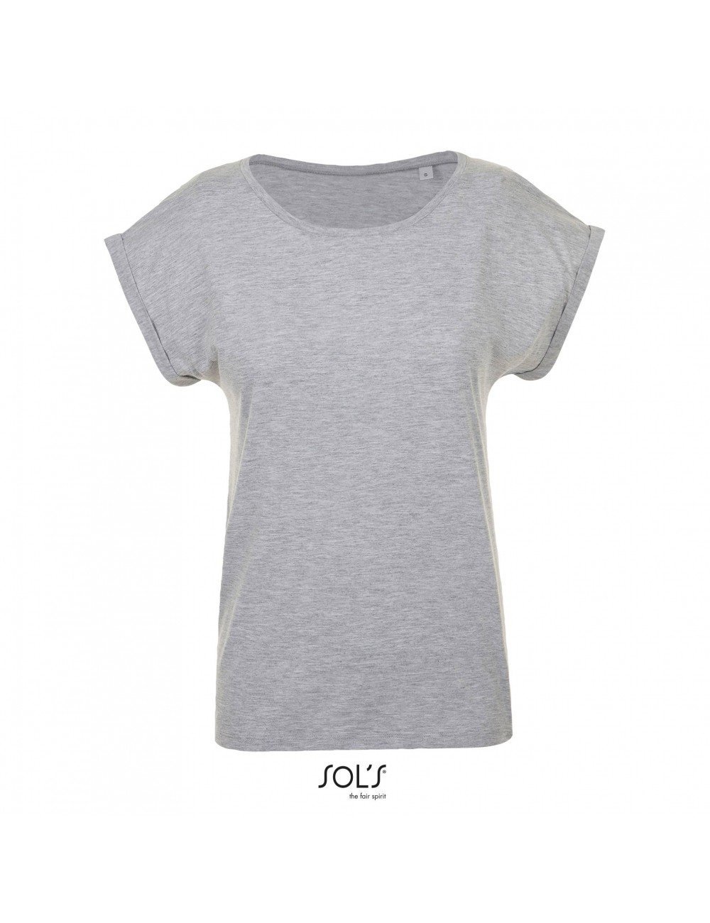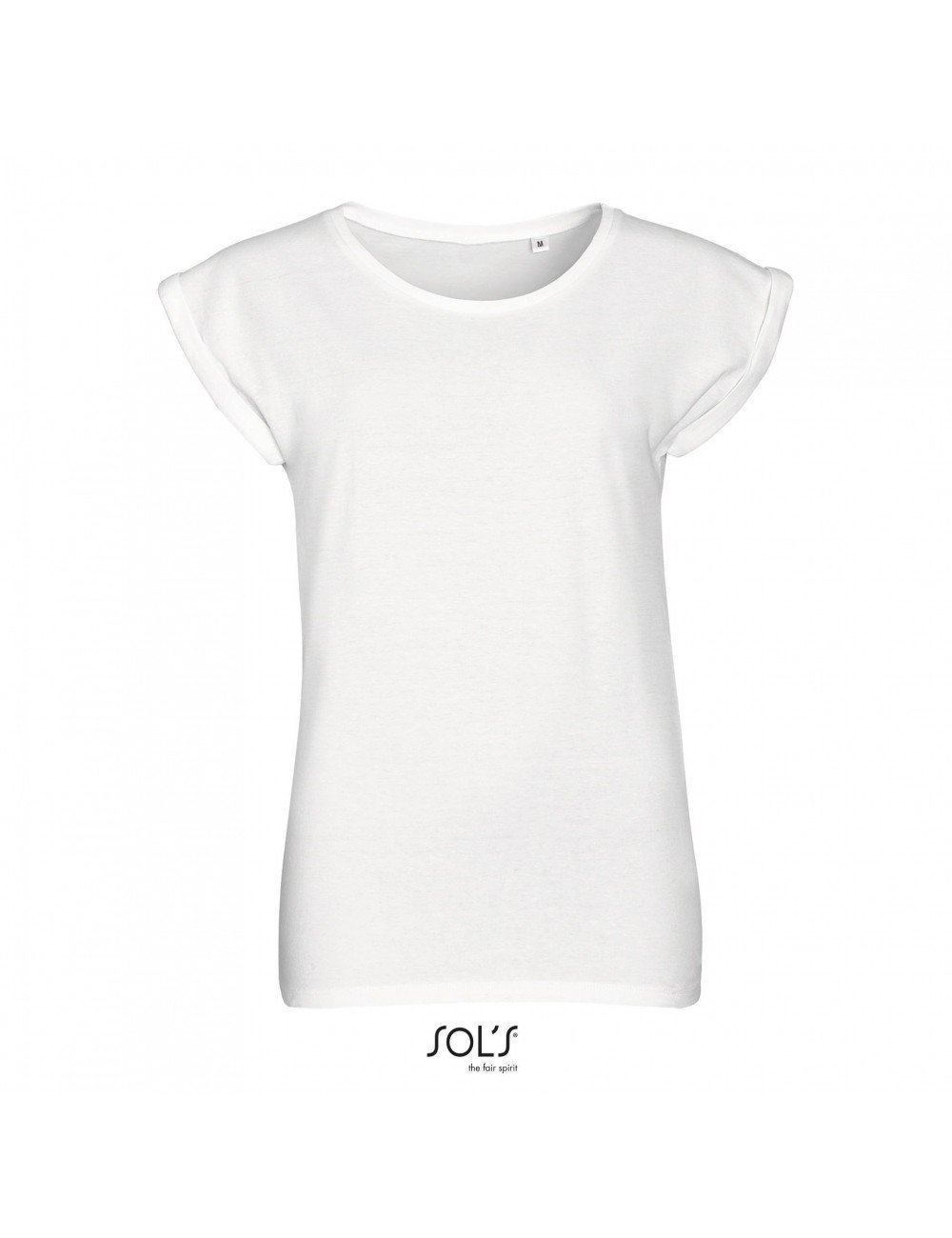 Κοντά μανίκια – Πλαϊνές ραφές – Στρογγυλή λαιμόκοψη – Λεπτομέρειες υφάσματος τύπου τζιν μέσα στη λαιμόκοψη – Εφαρμοστή γραμμή TWIN: