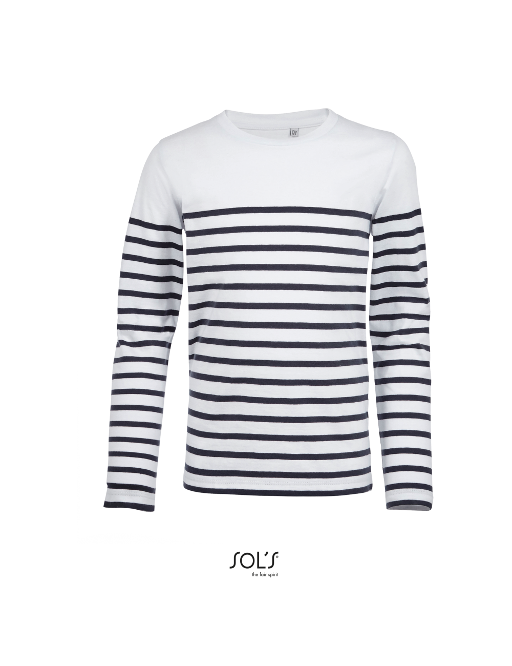 Μακριά μανίκια – Πλαϊνές ραφές – Ρίγες – Επεξεργασία ενζύμων για περισσότερη απαλότητα – Στρογγυλή λαιμόκοψη Δείτε εδώ την ανδρική