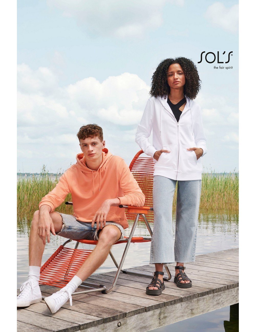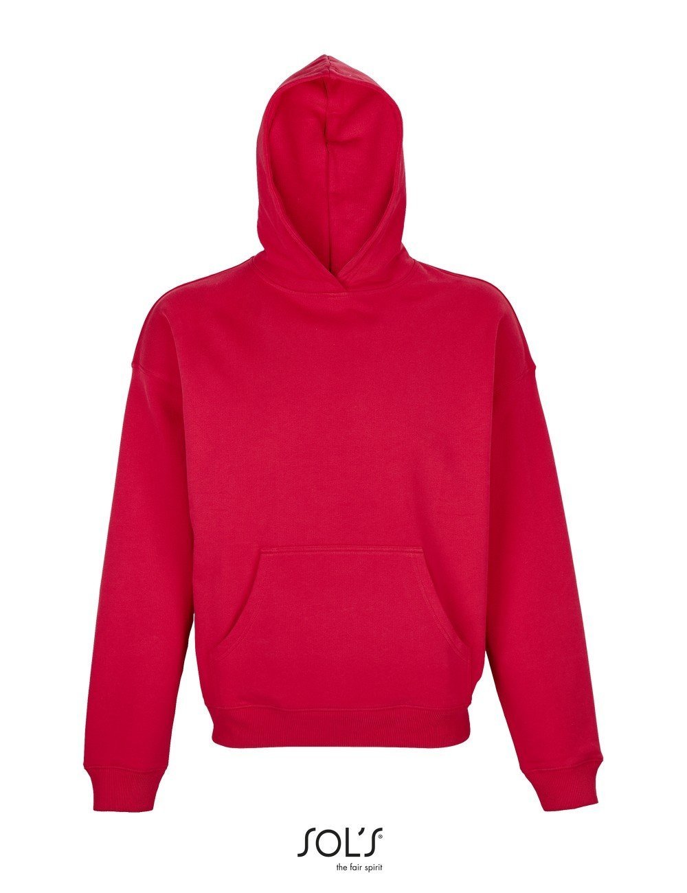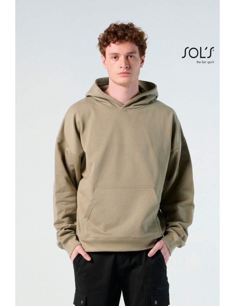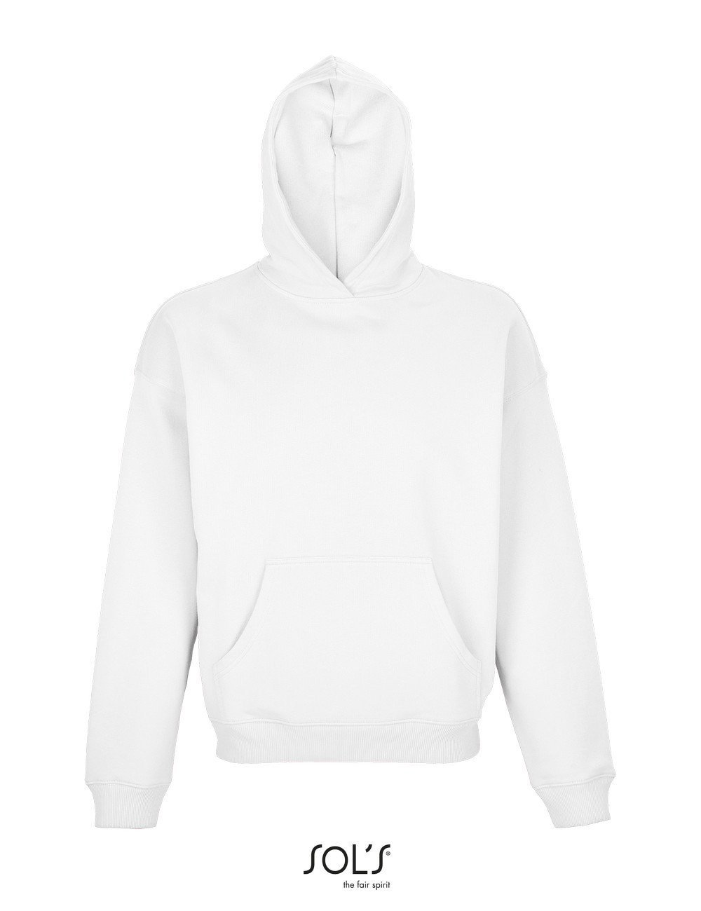 Πλαϊνές ραφές – Μανικοκόλληση – Ελαστικό ριπ 2×2 στις μανσέτες και τελείωμα – Τσέπη καγκουρό – Ενίσχυση (μισοφέγγαρο) για εκτύπωση