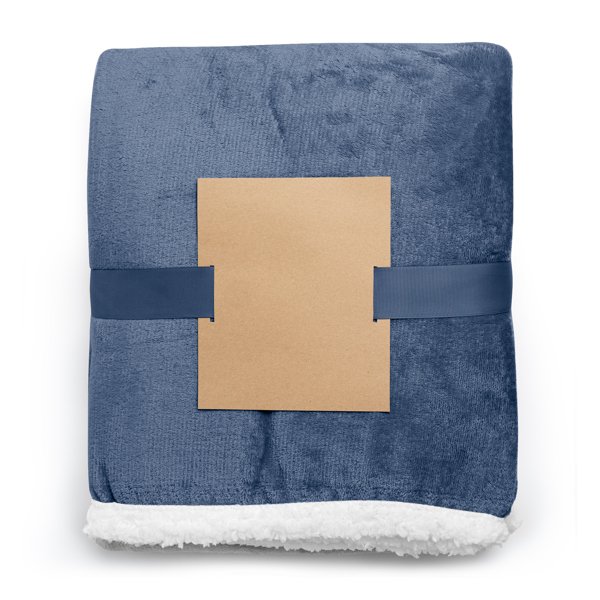 Sherpa-style blanket in 380 gsm fleece. Card for printing and matching colour ribbon included.