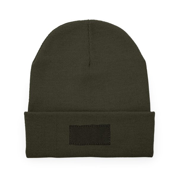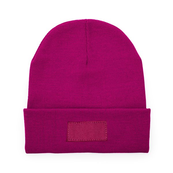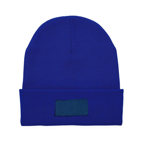 “Promotional beanie hat in double-layer acrylic. Matching front turn-up, ideal for marking.”