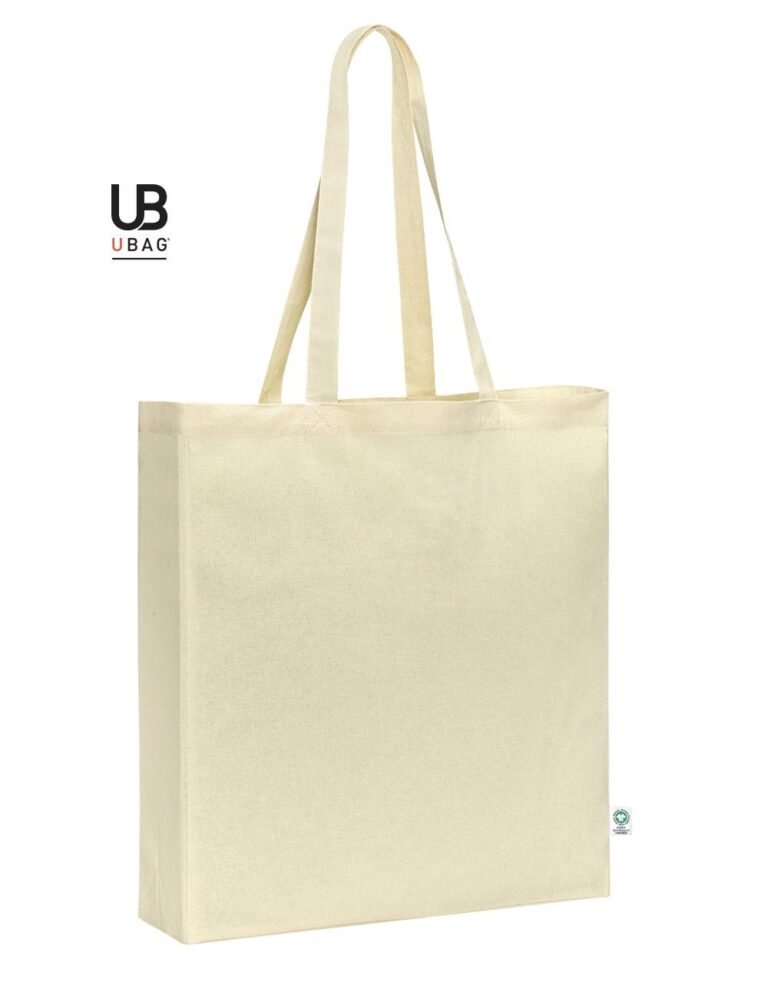 Bag 100% organic cotton 270 g/m² in colour with gussets on the base. 70cm straps.