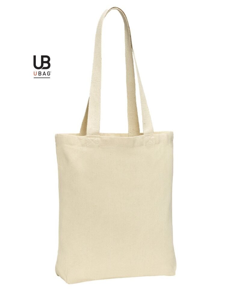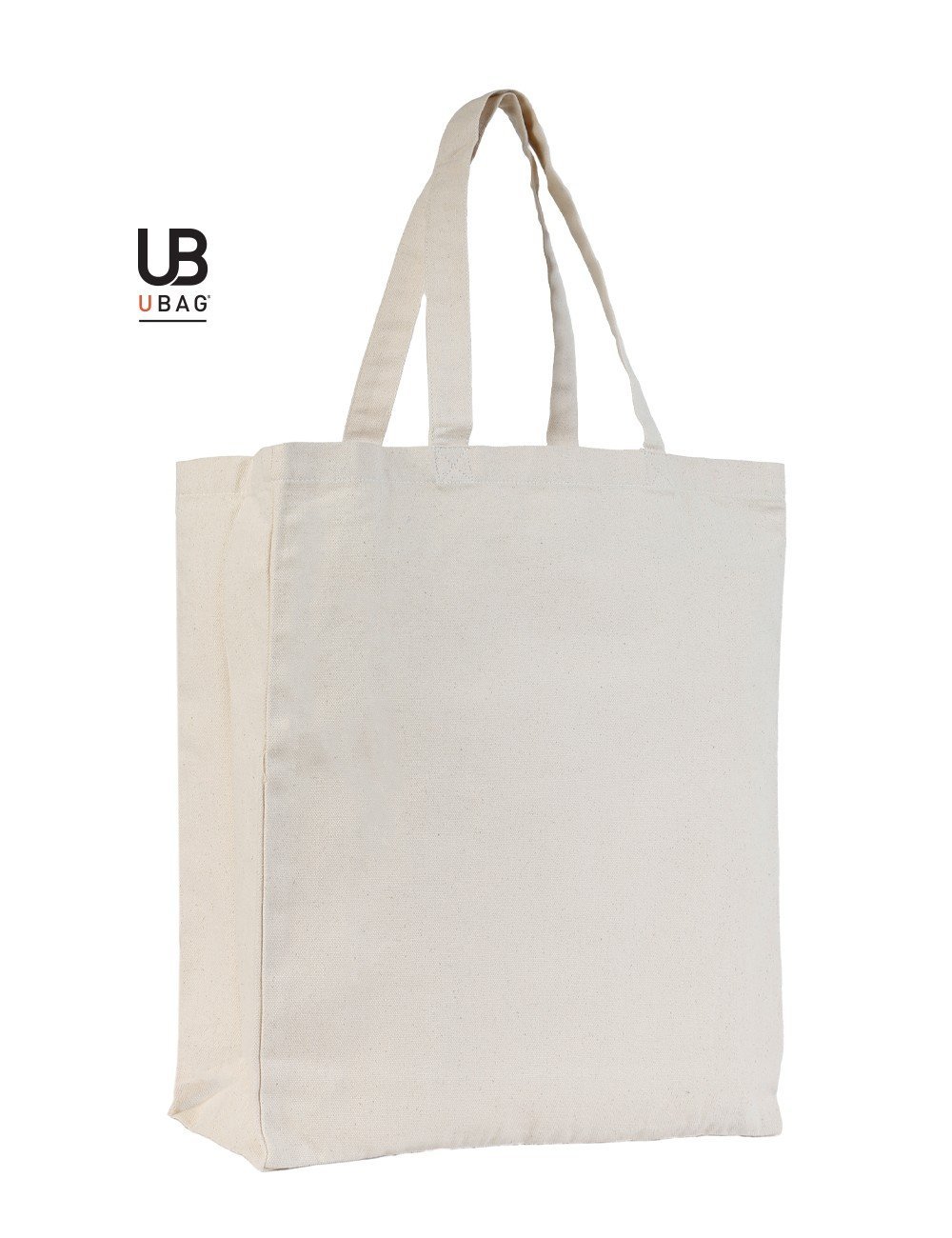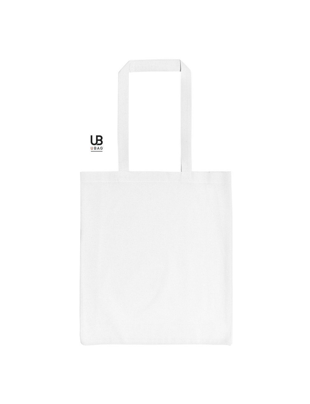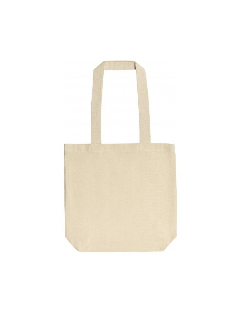 100% organic cotton bag with gusset and practical 70 cm long handles. 280 gsm.