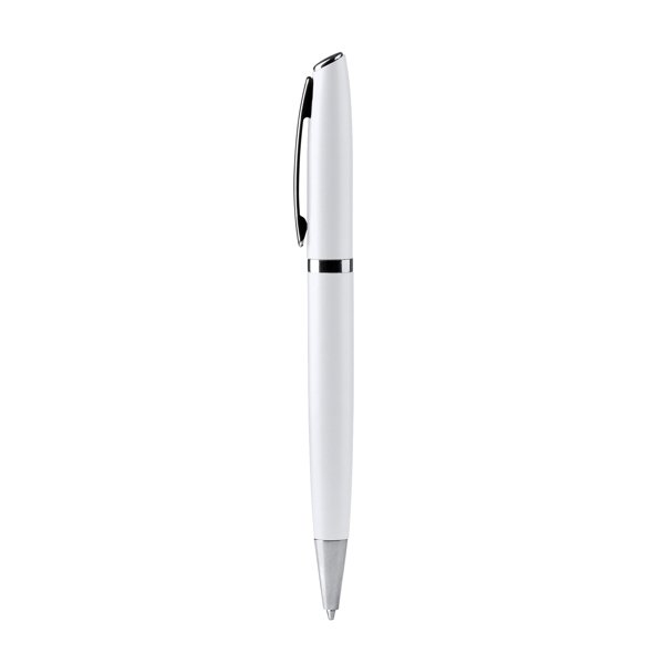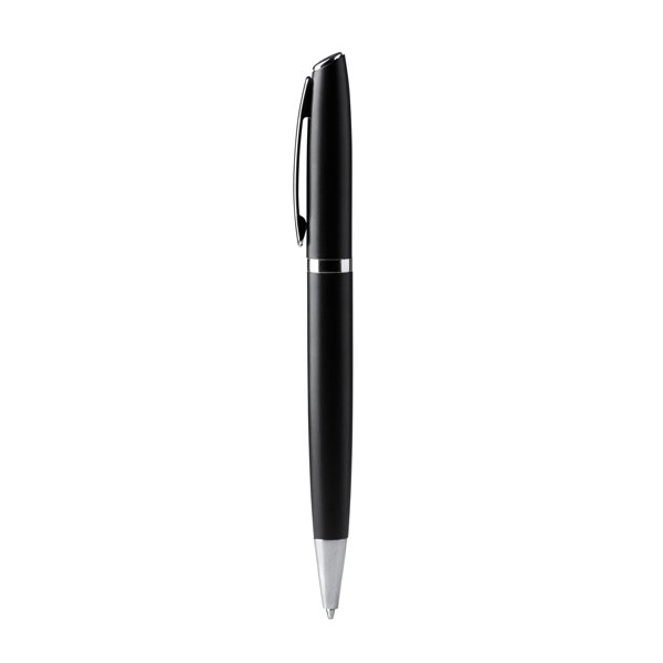 Elegant twist ball pen with body in recycled aluminium and metal details. Blue ink jumbo refill.