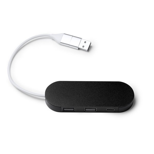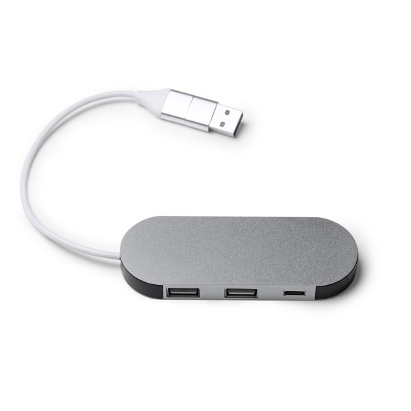 “USB port with a body made of high-quality recycled aluminium. This versatile port features a USB and Type-C input, as