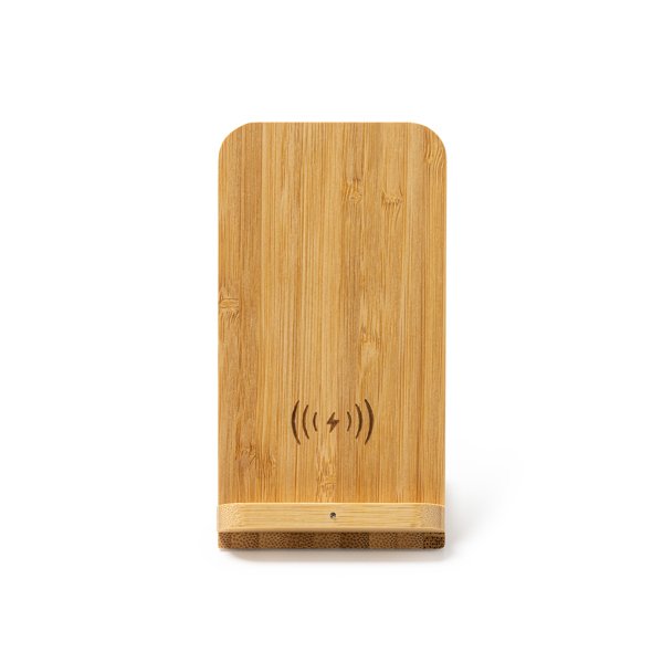 Wireless charger with bamboo body. Place your smartphone on top of it and leave it to charge. Compatible with wireless