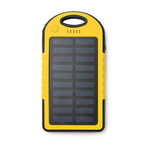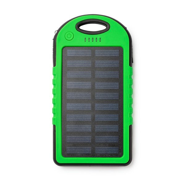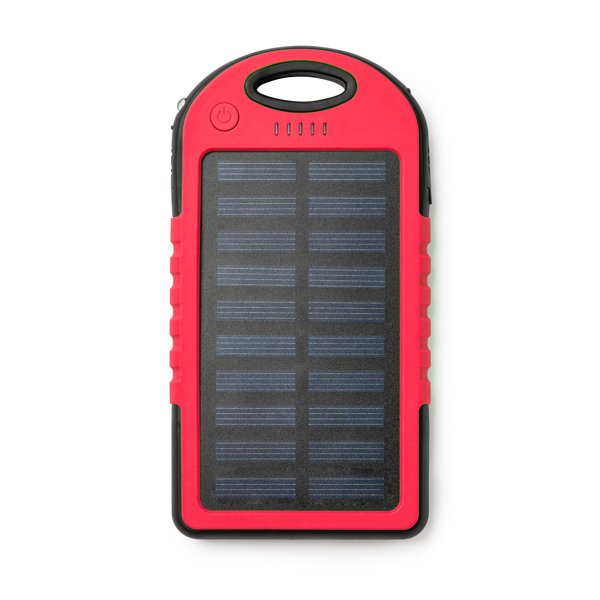 “Solar external battery, resistant to splashing water and with high load capacity. 4000 mAh. Led charging indicator and light. Current