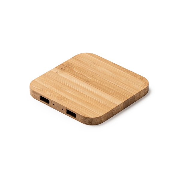 Wireless charger with bamboo body. Up to 3 devices can be charged simultaneously. Compatible with devices with wireless charging technology.