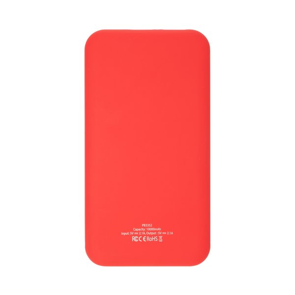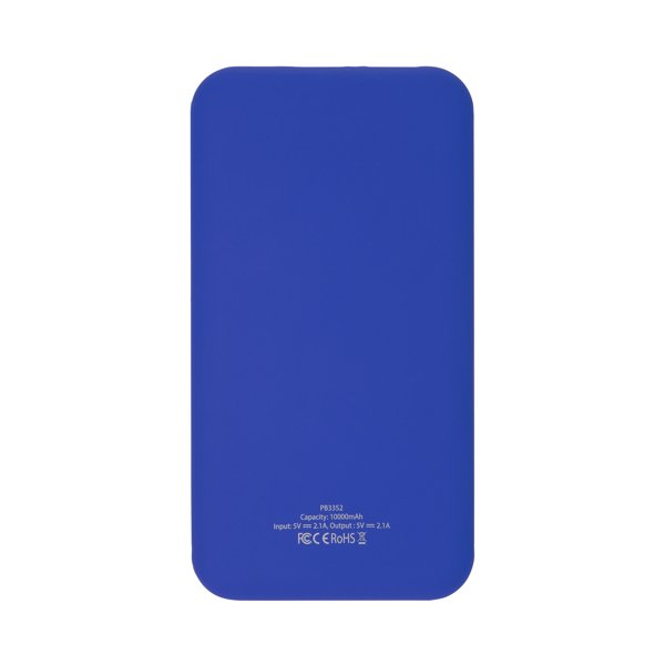Two-tone ABS external battery with 10000 mAh. LED charge indicator. DC5V/2.1A current output. Includes Micro USB cable.