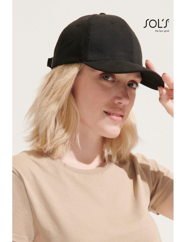 Κυρτό γείσο με 4 ραφές – Σταθερό μέτωπο – 2 κεντημένες οπές εξαερισμού – Ρυθμιζόμενο κλείσιμο με αυτοκόλλητο