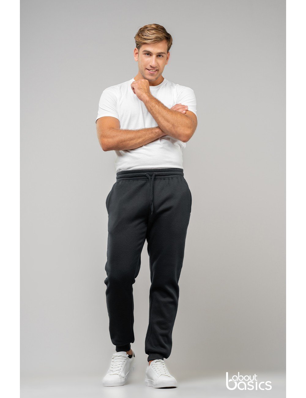 2 ιταλικές τσέπες – 1 πίσω εξωτερική τσέπη – Ελαστικό ριπ 2×2 στη μέση και τους αστραγάλους – Πλακέ κορδόνια