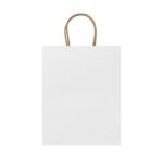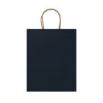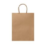 “110 gsm paper bag in natural finish, with reinforced short handles in a twisted design.”