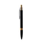 Pen with recycled aluminium body. Push button and bamboo details. Blue ink.