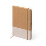 A5 notepad with hard covers in natural straw and cotton. Matching page marker and elastic band. 80 lined sheets.