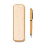 Fantastic twist ball pen made of bamboo with metallic details. Presentation in a bamboo case with magnetic clasp.