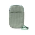 Mobile phone holder made of corduroy fabric. Main compartment with matching zip closure. Outer pocket. Includes matching carrying strap.