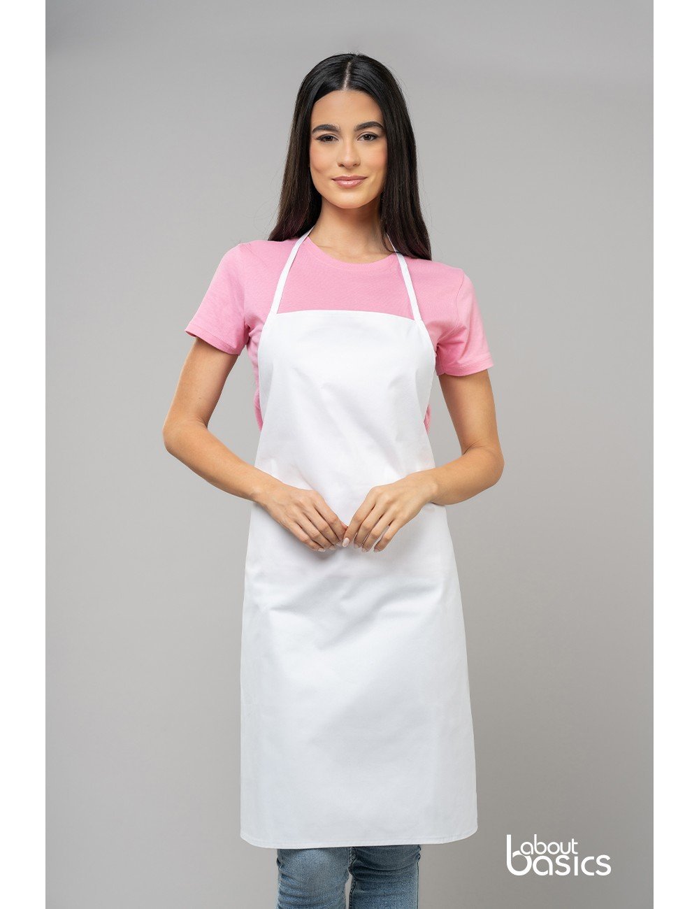 Ολόσωμη, μακριά ποδιά έως το γόνατο – Χωρίς τσέπες – Δέσιμο μπροστά με υφασμάτινο λουρί-κόμπο σε μεγάλη μεταλλική οπή Διαστάσεις: