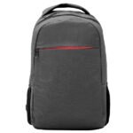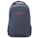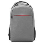 “Polyester laptop backpack in a heather finish design. Padded shoulder straps, back and handles. Double front compartment and side pockets. “