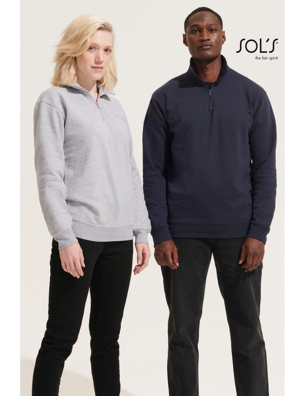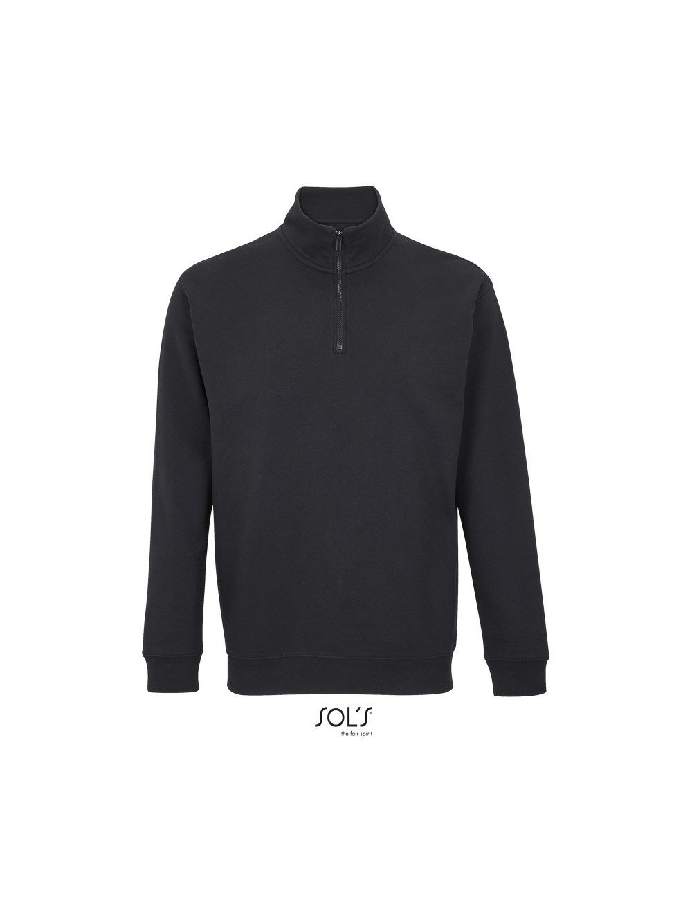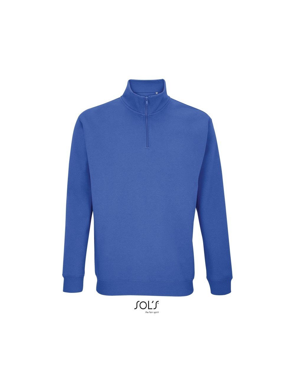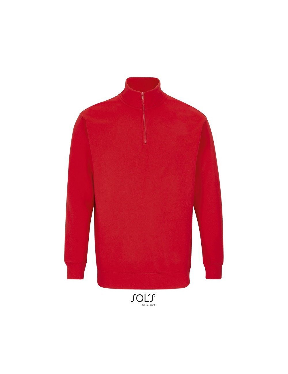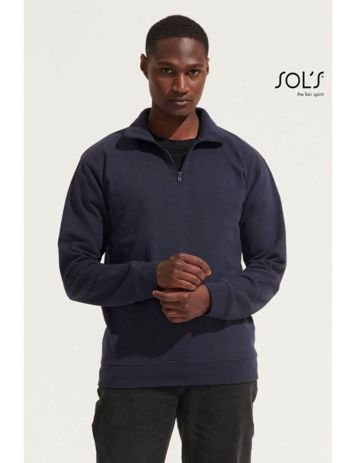 Ψηλός γιακάς με φερμουάρ 1/4 – Μανικοκόλληση – Πλαϊνές ραφές – Ελαστικό ριπ 1×1 στις μανσέτες και τη μέση – Πλαστικό φερμουάρ με μεταλλική λαβή στο ίδιο χρώμα – Ενίσχυση (μισοφέγγαρο) για εκτύπωση στο εσωτερικό του γιακά – Φακαρόλα στο λαιμό