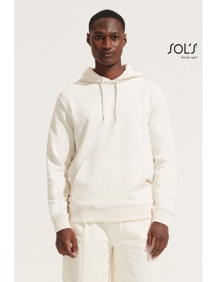 Πλαϊνές ραφές – Μανικοκόλληση – Ελαστικό ριπ 2×2 στις μανσέτες και τελείωμα – Τσέπη καγκουρό – Ενίσχυση (μισοφέγγαρο) για εκτύπωση στο εσωτερικό του γιακά – Φακαρόλα από jersey στο λαιμό – Επενδεδυμένη κουκούλα από jersey – Κορδόνια με μεταλλικές οπές και στοπ