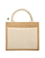 Κοντά στρόγγυλα λευκά χερούλια – Με πιέτα – Εξωτερική βαμβακερή τσέπη 150grs (25 x 18εκ.)