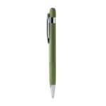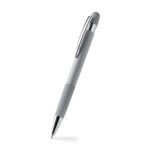 Pen with recycled aluminium body with striped grip and matte rubber touch finish. Details in chrome finish. Jumbo ink refill in blue.
