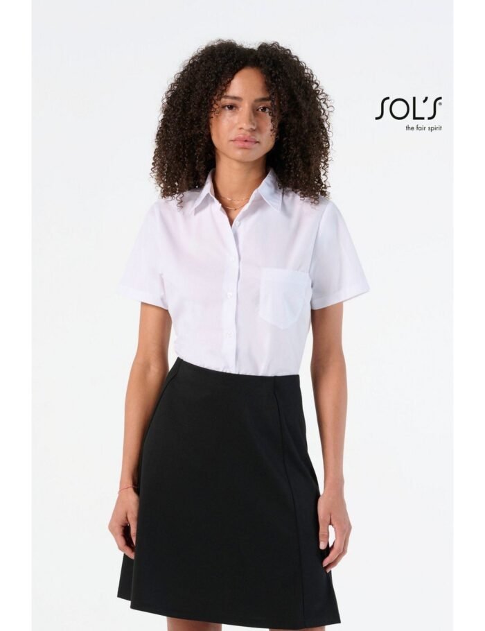Κοντά μανίκια – Ενισχυμένος γιακάς – Τσέπη στο στήθος – Πατιλέτα με 7 κουμπιά στον ίδιο τόνο – Στενή γραμμή