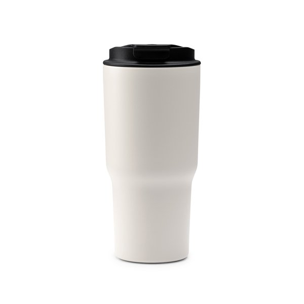 Double-walled 304 stainless steel thermal tumbler in a ceramic finish design. Safety screw lid. Anti-slip base. Capacity: 600 ml. Presentation in design box.