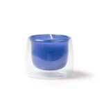 Scented candle in a double-layer glass recipient. Vegetable wax with vanilla aroma. Presentation in eco design box.