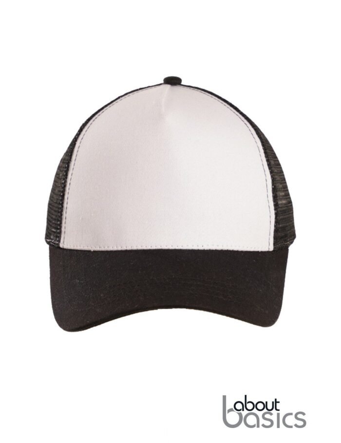 Δίχτυ στο πίσω μέρος – Βαμβακερό ύφασμα στο γείσο και το μέτωπο – Κυρτό γείσο με 6 ραφές – Σταθερό μέτωπο με έντονη ενίσχυση – Ρυθμιζόμενο πλαστικό κλείσιμο