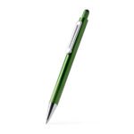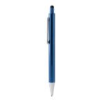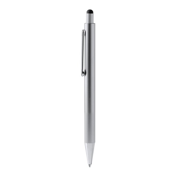 Aluminium ballpoint pen with striped grip in metallic finish and touch pointer. Jumbo ink refill in blue.