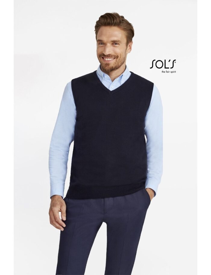 Λαιμόκοψη “V” – Μανικοκόλληση με εξωτερικές ραφές – Μοντέρνες μασχάλες – Ελαστικό ριπ στις μανσέτες και τη μέση – Πλεκτή