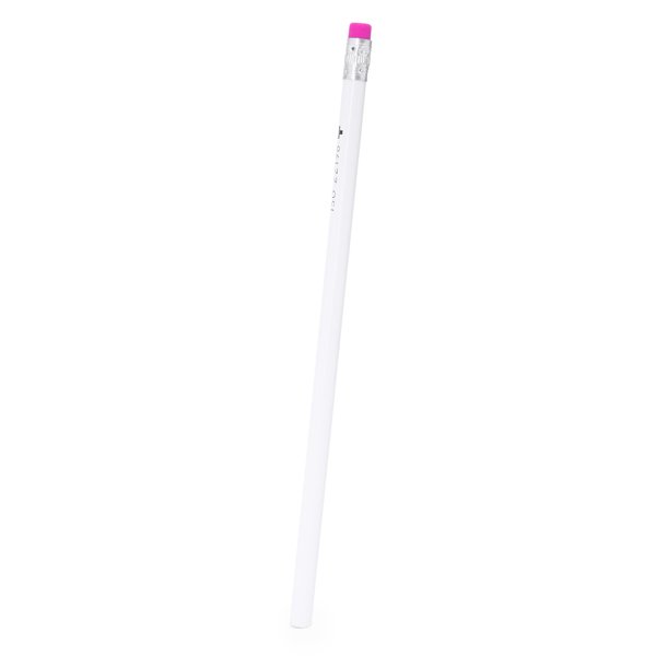 “White wooden antibacterial pencil, with rubber available in different colours. Antibacterial logo printed on the upper part of the pencil.”