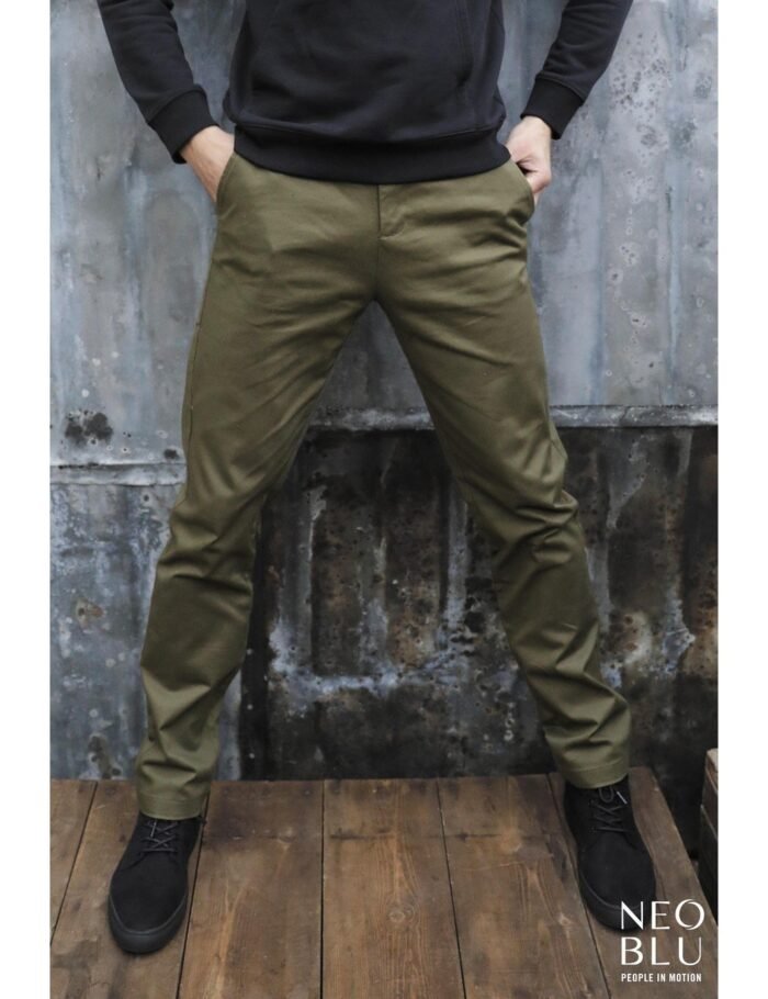 Κλείσιμο με φερμουάρ και κουμπί – Θηλύκια για τη ζώνη – Ελαστική μέση – 2 μπροστινές ιταλικές τσέπες – 2 πίσω κρυφές τσέπες με κουμπιά