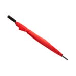 “XL umbrella with handle, shaft and tips in black. Long fiberglass ribs. Auto-opening button. EVA handle. Colour matching velcro fastening. 130 cm diameter.”