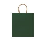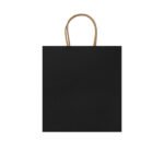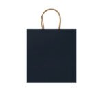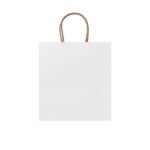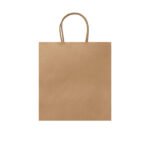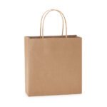 “110 gsm paper bag in natural finish, with reinforced short handles in a twisted design.”