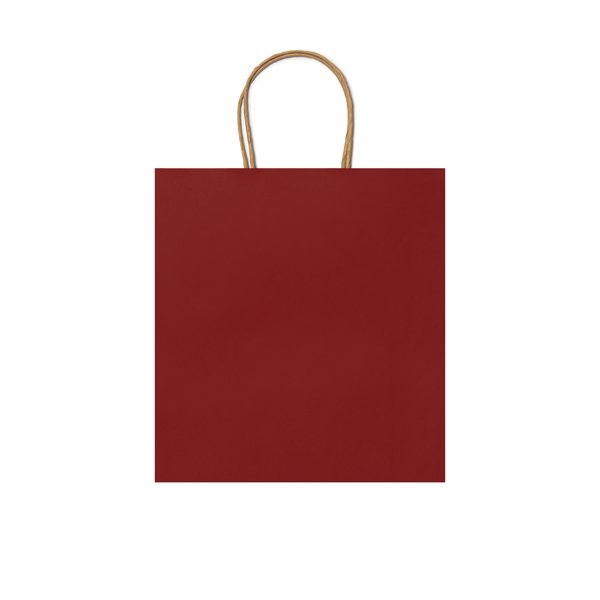 “110 gsm paper bag in natural finish, with reinforced short handles in a twisted design.”