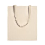 “Tote bag made of cotton fabric in natural colour, with long handles in same colour tone.”