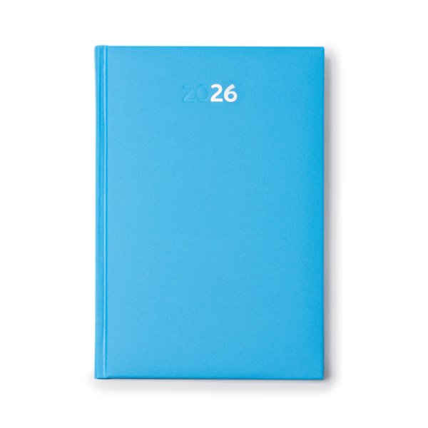 A5 diary with padded PU cover engraved in low relief. 320 pages plus 4 pages with maps. Bookmark matching the front cover. Paper weight: 60 gsm. 2+2 colour print. White paper.