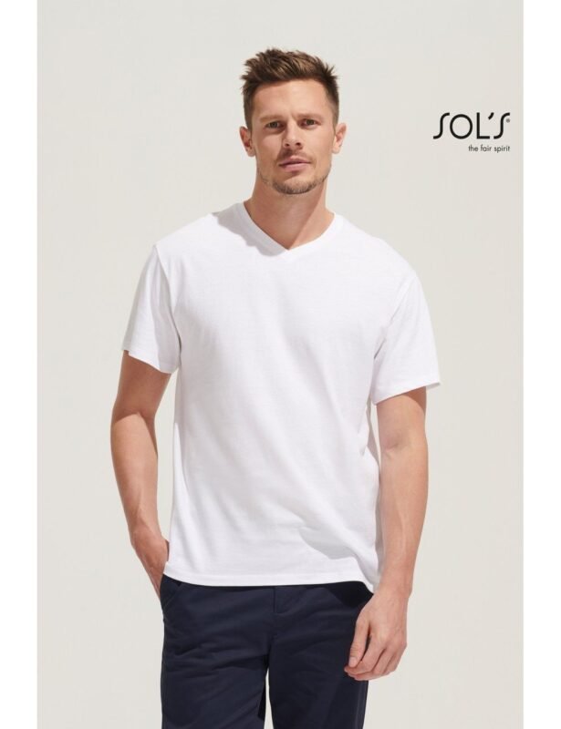 Λαιμόκοψη “V” – Κοντά μανίκια – Χωρίς πλαϊνές ραφές – Διπλό ελαστικό ριπ 1×1 στη λαιμόκοψη – Φακαρόλα στο λαιμό