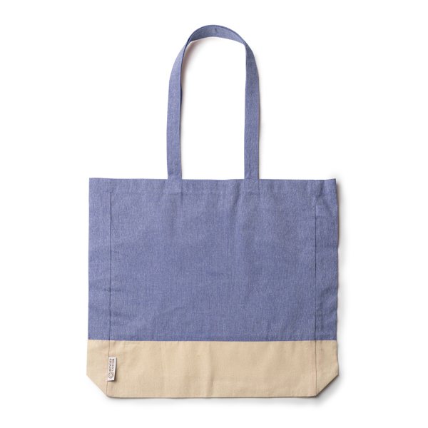 Recycled cotton bag in a heather finish design and 120 gsm natural cotton with gusset. Reinforced 70 cm long handles.