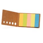 “Original and practical recycled cardboard notepad, with 100 sticky note strips in assorted colours.”