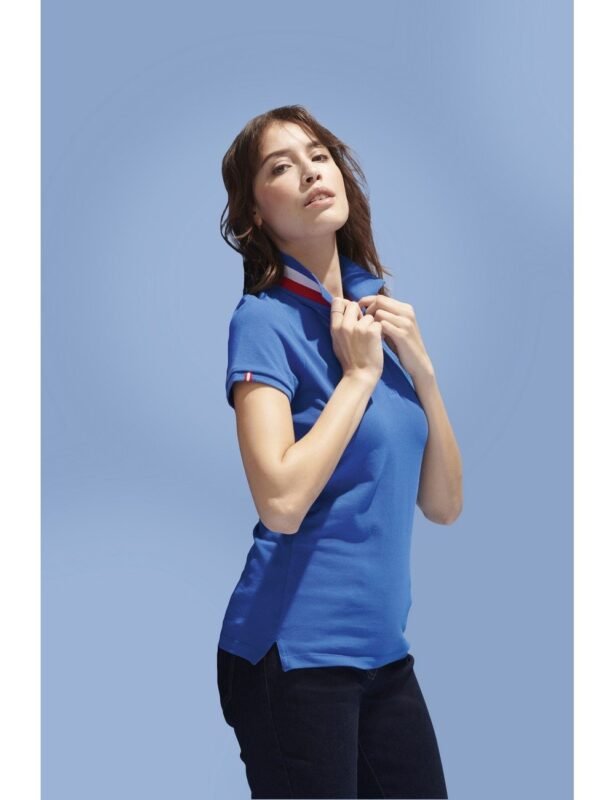 Κοντά μανίκια – Πατιλέτα με 3 κουμπιά στον ίδιο τόνο – Λεπτομέρειες σε χρωματική αντίθεση στον γιακά, την πατιλέτα και