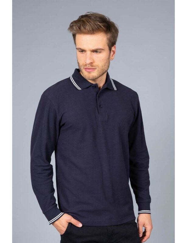 Μακριά μανίκια – Πατιλέτα με 2 κουμπιά στον ίδιο τόνο – Ριγέ διχρωμία στο γιακά και τις μανσέτες – Φακαρόλα