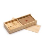 2-games set: recycled cardboard deck of cards and wooden domino. Presentation in a wooden box.