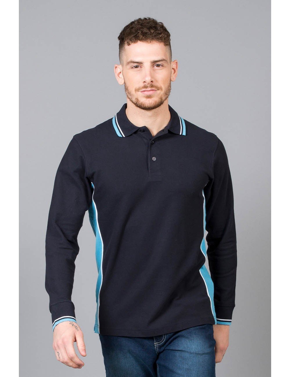 Μακριά μανίκια – Πατιλέτα με 3 κουμπιά στον ίδιο τόνο – Διχρωμία στα πλαϊνά – Ριγέ διχρωμία στο γιακά και τα μανίκια – Φακαρόλα στο λαιμό