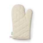 Eco kitchen mitt in 100% organic cotton with hanging strap and one flat side ideal for marking. Practical and comfortable for everyday use.