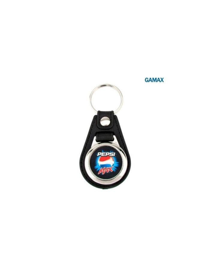 Μπρελόκ δερματίνης στρογγυλό, μονής όψης. Διαθέτει κέρμα για χρήση σε καρότσι σουπερ-μάρκετ στο πίσω μέρος.